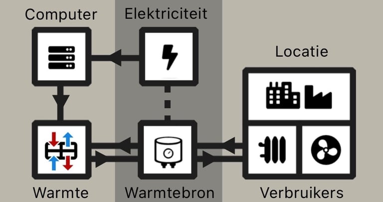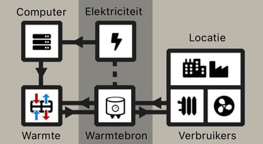 De computerwarmte unit levert warmte tegen kostprijs via een warmte wisselaar waardoor de bestaande installatie minder hard hoeft te verwarmen. CO₂ uitstoot komt op conto van het micro datacenter.