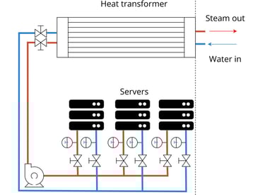 Van 70 °C naar stoom: de volgende stap in restwarmteaandeelBij Computerwarmte hebben we al bewezen dat we betrouwbaar warmte kunnen leveren met temperaturen rond de 70 °C, rechtstreeks uit de restwarmte van datacenters. Maar we gaan verder. Met onze nieuwe inzet van een geavanceerde Heat Transformer technologie werken we aan het verhogen van de uitgaandetemperatuur zó ver dat we uiteindelijk zelfs stoom kunnen genereren tot circa 130 °C.